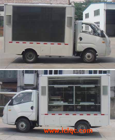 該車(chē)是用于廣告宣傳和科普宣傳專用車(chē)輛。車(chē)輛右側(cè)選裝LED屏,左側(cè)選裝滾軸裝置。側(cè)防護(hù)和后防護(hù)與車(chē)輛結(jié)構(gòu)為一體。車(chē)輛后部下邊緣離地高度 |