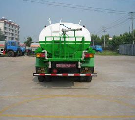 本車前裝有鴨嘴形噴嘴或圓頭沖嘴,后面裝有圓柱形灑水砣,側(cè)噴花灑蓮花頭。車后部有高射噴槍。(選裝)