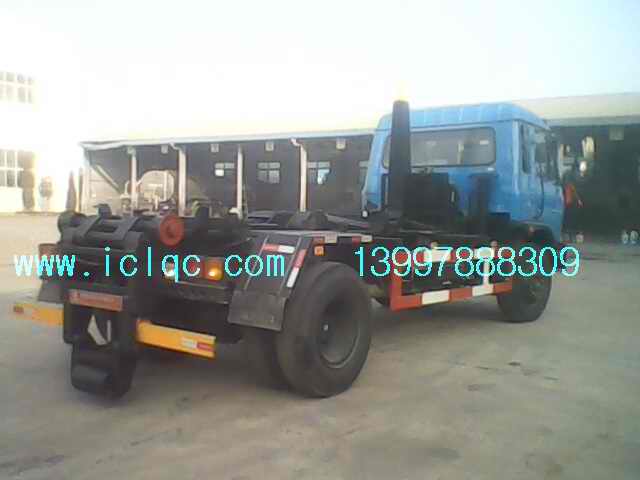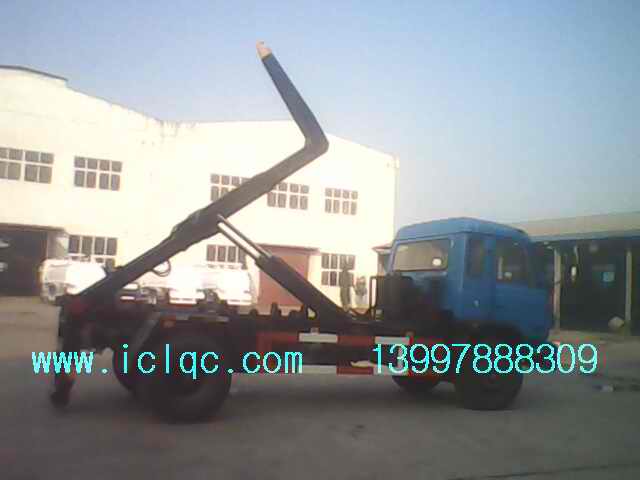 程力專用汽車箱體可卸式垃圾車又稱拉臂式垃圾車(以下簡稱垃圾車)是用于城鎮袋裝、散裝生活垃圾物的收集、運輸、卸料作業的專用車輛。 該車是由汽車底盤、伸縮拉臂、主臂油缸、活動套臂、套臂油缸、附車架、翻轉架、支撐腿、鎖緊架、鎖緊油缸及多路換向閥等組成。翻轉架一端連在附車架上,其另一端設有活動套臂,中間安裝有橫向和縱向鎖緊系統;主臂油缸一端連在活動套臂上,另一端連接在附車架上;橫向鎖緊機構通過鎖緊油缸的動作可以將垃圾箱體與翻轉架上連為一體,再通過伸縮油缸的伸出使活動套臂與翻轉架連為一體,最后在主油缸伸出時形成自卸角,從而產生自卸;鉤箱和放箱是橫向鎖緊處于伸出松開狀態,而套臂油缸處于收回狀態,伸縮拉臂回到活動套臂中,縱向鎖緊機構脫開,工作拉臂處于最短時進行鉤箱與放箱。