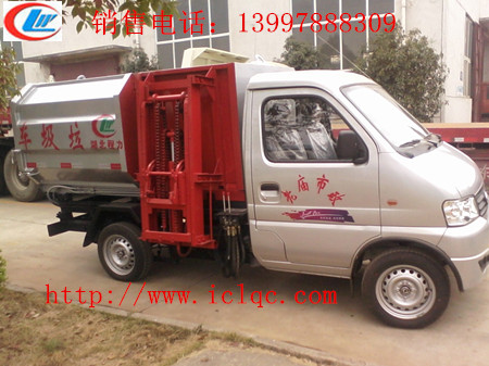 城市掛桶式垃圾車產(chǎn)品中的密閉壓縮式垃圾車產(chǎn)品是和壓縮式垃圾站配套使用的垃圾運輸車輛,在車與站的壓縮箱對接時,設置在廂體中間的液壓系統(tǒng),首先通過連接后門的機構,將后門自動打開,與站對接后,壓縮站的液壓裝置推動經(jīng)過壓縮的垃圾,進入垃圾車廂體內(nèi)。然后垃圾車自動關閉后門,載運垃圾離開。當垃圾車離開時,后門自動打開后,廂體靠設置在副車架上的油缸、三角板和拉臂組成的舉升機構,使廂體繞后端反轉(zhuǎn)軸旋轉(zhuǎn)55度,將垃圾倒出廂體外。然后廂體降落原位,后門自動關閉。由此可見,該產(chǎn)品具有裝卸垃圾方便,自動化程度高,工作效率高等特點。監(jiān)裝置和數(shù)據(jù)傳送裝置。在駕駛室內(nèi)裝有供作業(yè)監(jiān)的視頻監(jiān)裝置,以監(jiān)垃圾裝載和卸料作業(yè)狀況,并裝有噪聲自動檢測記錄儀和數(shù)據(jù)儲存、在線傳輸裝置。