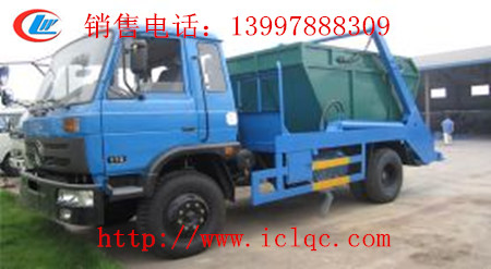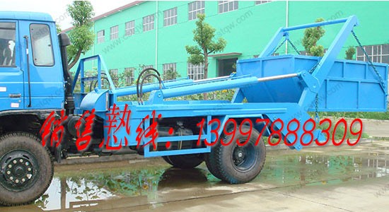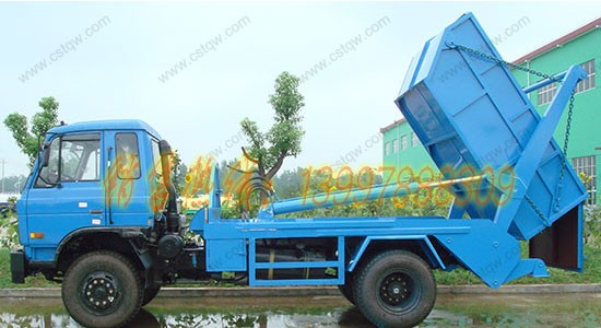 擺臂式垃圾車料斗:料斗是金屬焊接件,有敞開和密封兩種形式。當散裝貨物裝入料斗后,掛上吊鏈,通過操作東風擺臂垃圾車擺臂可將料斗吊上車。卸料時操作擺臂將料斗吊起,落地后取下一端的吊鏈可操作料斗卸料。料斗的最大傾翻角可達86°。