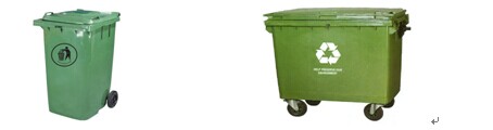 程力威牌流動式分體垃圾壓縮箱,最適合于壓縮城市街區已經用乎合EN-ENE840標準的塑料收集桶(雙輪240L或四輪660L)收集的垃圾。如圖: