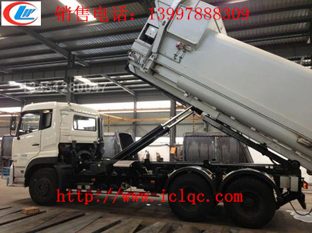 東風后雙橋車廂可卸式垃圾車/東風雙橋拉臂式垃圾車采用東風后雙橋EQ1258VFJ1底盤,常用發動機康明斯(正宗國四),4350+1300軸距,陜齒八檔變速廂.是配套多種垃圾裝載廂自裝卸的專用車輛。一車可多配多廂(散裝垃圾箱、連體壓縮箱、分體壓縮箱等)使用,機械化程度高。箱體容積12-18立方多種規格系列產品,分別匹配14-20噸勾臂。臂可以伸縮。采用電、氣、液聯合控制技術,確保了各個互鎖動作準確到位,簡化了操作,形成“傻瓜”式操作模式,保證了整車的安全運營。主要用于城市生活垃圾及大型廠礦物料的收集轉運。