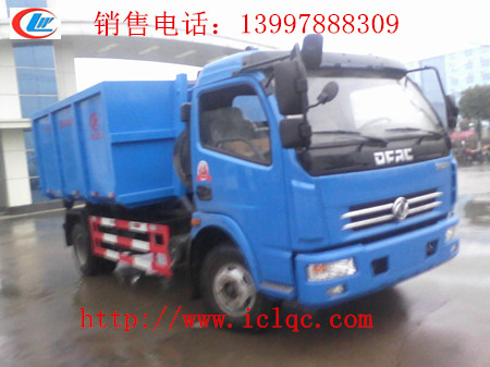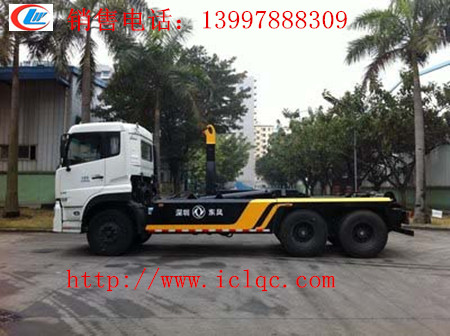 8、東風153鉤臂式垃圾車垃圾廂可自吊上放下,可自行傾倒垃圾,上下一次工作循環時間≤50S,東風153鉤臂式垃圾車的特點是一個車能配多個垃圾廂,能實現一車與多垃圾廂聯合作業,循環運輸,充分提高運輸能力,垃圾斗容積:12立方;