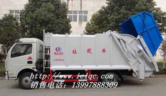 環衛垃圾車東風東風多利卡6方國四壓縮式垃圾車 : 采用東風原裝底盤(全國聯保),具有整體結構設計合理緊湊,使用效率高,廂體采用輕量化設計、運載量大、封閉性能好;是一種安全、節能、環保、高效的新型壓縮式結構環衛專用車。常用東風朝柴或玉柴發動機,8.25-16 14PR尼龍輪胎,容積一般為6立方,