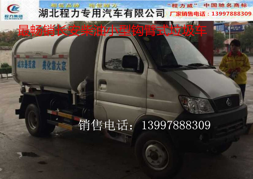 程力小型3方勾臂式環衛垃圾車最為暢銷,有汽車發動機跟柴油發動機兩種選擇,垃圾車的箱體標準容積為3立方,箱頂部有兩扇可開合的密封蓋,避免運輸過程中產生二次污染。