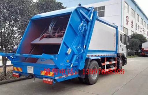 2.后裝掛桶壓縮式環衛垃圾車,該車屬于垃圾車的高端車型,技術含量最高的,后裝掛桶翻轉機構,可同時掛裝兩個垃圾桶,壓縮功能強大,收集量大,工作迅速環保,適用于城市生活垃圾遠距離大容量運輸。