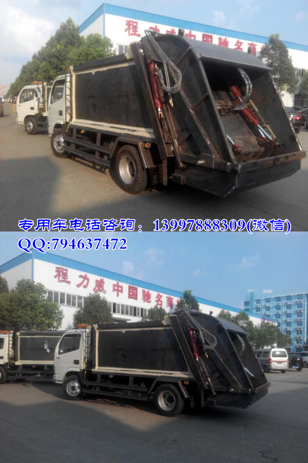 東風多利卡壓縮式垃圾車產品介紹;采用東風EQ1100底盤,配備玉柴140馬力發動機,2.5噸前橋,6噸后橋,7.50輪胎,五檔變速箱(日本五十鈴技術),方向助力。壓縮式垃圾車由密封式垃圾廂、液壓系統、操作系統組成。采用機、電、液壓聯動控制系統、電腦控制及手動操作系統,通過填裝器和推鏟等裝置實現垃圾倒入,壓碎或壓扁,并將垃圾擠入車廂并壓實和推卸。整車為全密封型,自行壓縮、自行傾倒、壓縮過程中的污水全部進入污水廂,較為徹底的解決了垃圾運輸過程中的二次污染的問題,關鍵部件采用進口部件,具有壓力大、密封性好、操作方便、安全等優點。