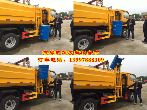 掛桶垃圾車又名自裝卸式垃圾車主要用于各環衛市政及大型廠礦部門運載各種垃圾,亦可運輸灰、砂、石、土等散裝建筑材料,也可以在礦山或煤礦中運送礦石或煤。由密封式垃圾廂、液壓系統、操作系統組成。舉升油制缸(2支)垃圾廂可自吊上放下,上下一次工作循環時間≤50S。