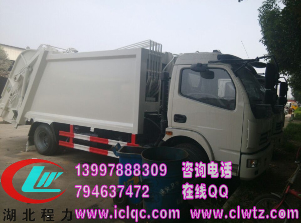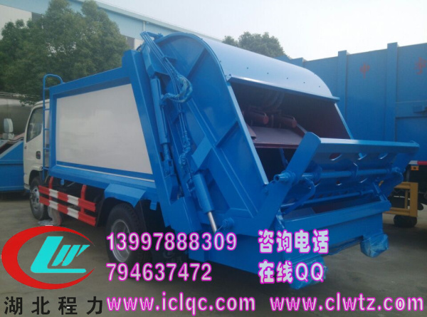 東風小多利卡壓縮式垃圾車容積6立方,可裝4噸垃圾,底盤選用東風多利卡EQ1072GLJ國五排放標準,朝柴95馬力發動機,全密封式垃圾車廂,自行壓縮、自行傾倒、壓縮過程中的污水全部進入污水廂,較為徹底的解決了垃圾運輸過程中的二次污染的問題,東風多利卡壓縮式垃圾車關鍵部件采用進口部件,具有壓力大、密封性好、操作方便、安全等優點。東風多利卡壓縮式垃圾車可選配后掛桶翻轉機構或垃圾斗翻轉機構。