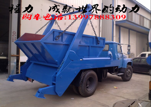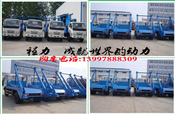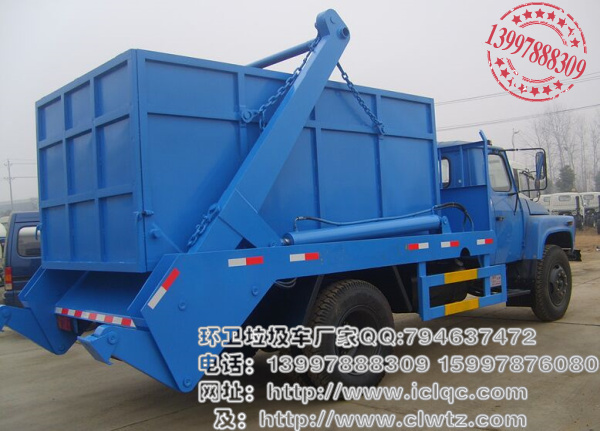 擺臂式垃圾車適用全國通用垃圾斗,帶自卸功能,液壓操作,垃圾斗可自吊上吊下,擺臂一次工作時間:60S。該車的特點是貨斗與車體分開,能實現一臺車與多個貨斗聯合作業,循環運輸,充分提高了車輛的運輸能力,特別適用于短途運輸,如環衛部門對城鎮垃圾的清理、運輸等。