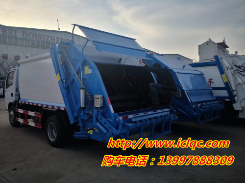 東風小多利卡D6后裝壓縮式垃圾車,搭配全柴115馬力(或朝柴102馬力或玉柴115馬力)國五發動機,萬里楊五檔箱,7.00R16鋼絲胎,軸距3308mm,正規東風股份GB7258-2017新規底盤;上裝采用Q345高強度錳鋼板制作,廂體容積:6立方米,可裝15立方散裝垃圾,合肥快速液壓泵,大流量快速手自一體多路換向閥,可編程PLC電控系統,卸料時帶一鍵循環系統,司機不下車可完工卸料工作。尾部選裝翻轉桶裝置,可翻120L/240L國標方形塑料桶。選裝氣動密封蓋,選裝遙控器操作。